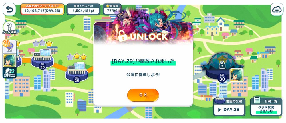 お昼にやっと瀬名泉Bになったのと、day29の☆がギリギリすぎたやつ。ライカちゃんもらう予定!あと2曲でツアー終了💃