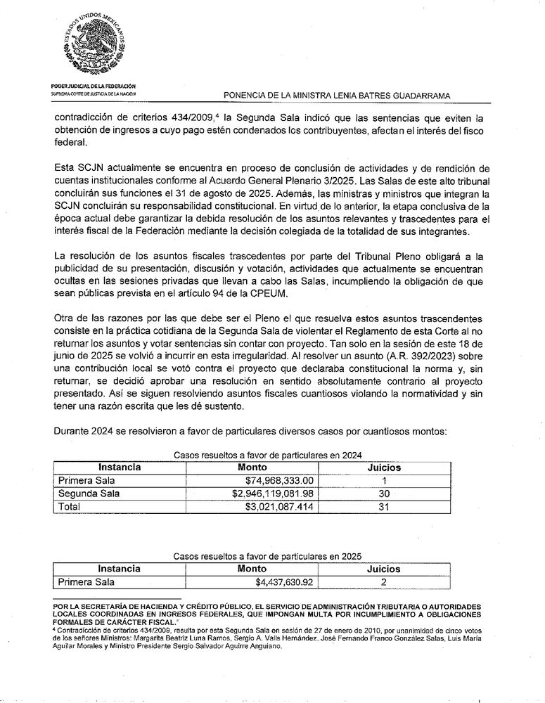 El próximo martes se votará la propuesta que presenté para que los asuntos fiscales que residen en las dos salas se voten en el Pleno de la Corte de manera transparente, en sesiones públicas.