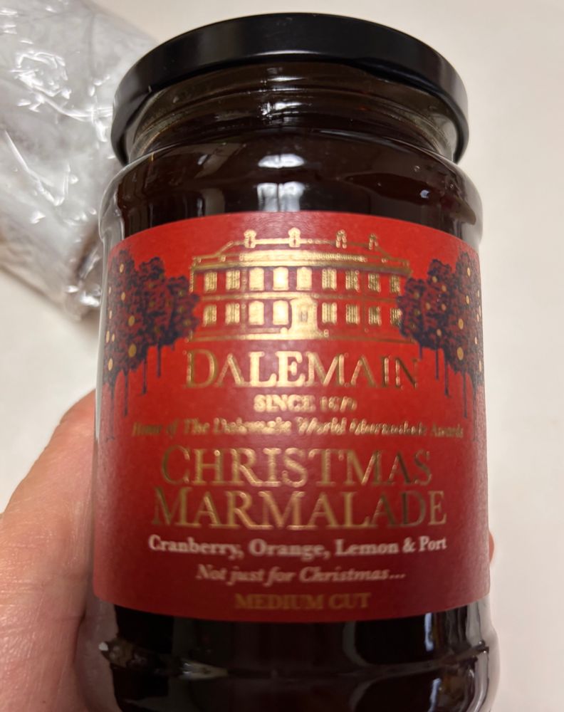 遠くからの輸入だし、安いし、ケーキじゃないし、こんなものかもと思いつつも諦められず、ダルメインのクリスマス・マーマレードを塗ってみたら美味しいこと!(マーマレードが(⌒-⌒; ))