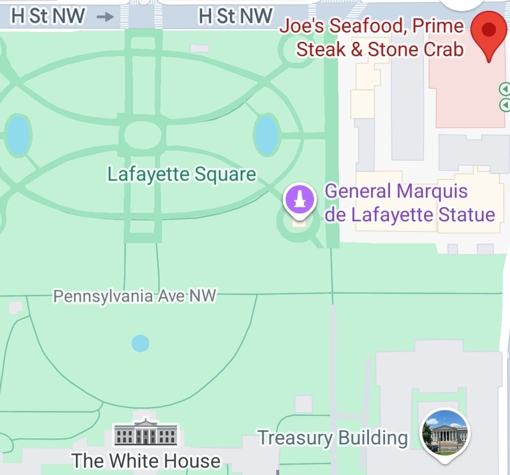 I think it's Joe's which is funny because you can walk there from the white house which is probably why he picked it