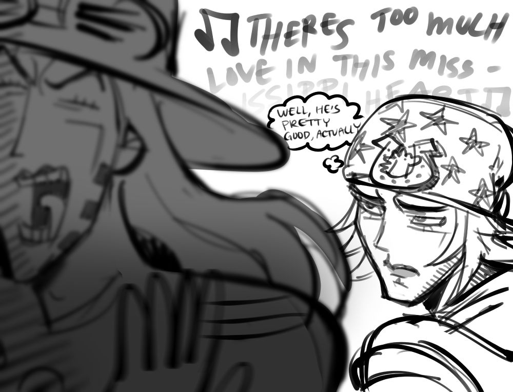 sorry i havent been making full drawings recently and idk if i should post them here but ill do it anyway. bf (viktor) found out abt jayces little video game crush and spends 6 months crafting a working replica of them ouuhh ok... #jayvik