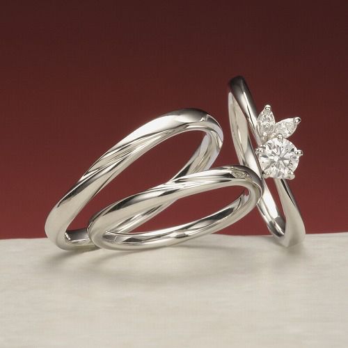 マリッジリングは細身のウェーブラインでエンゲージリングとぴったり重なります。