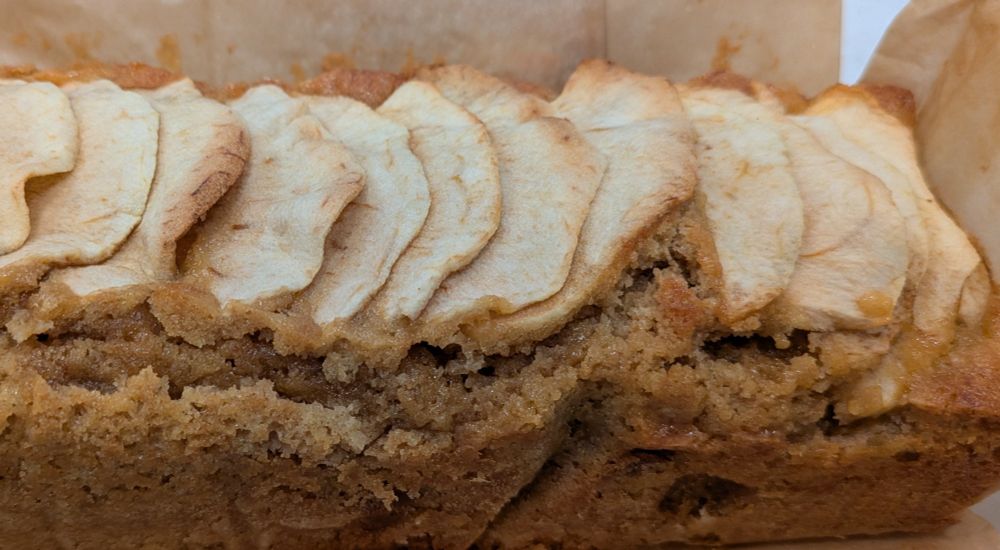 今日はりんごとシナモンのパウンドケーキ。型紙を敷くのに失敗して、ちょっと側面が凹んだ。