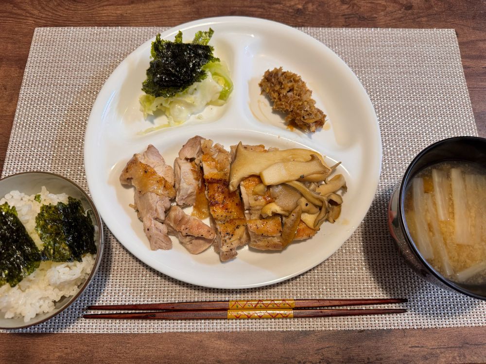 昨日の余り物祭り、鮭焼いたけど旦那にだけあげた