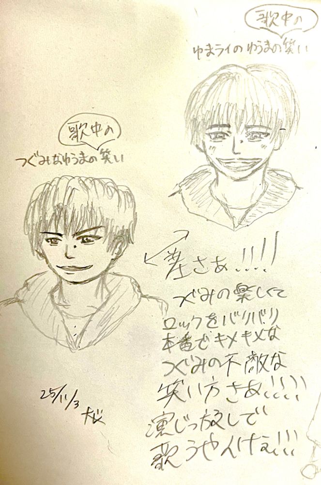 つぐだと「俺が歌ってJewels含めてみんなで!」を「格好良くキメながら、地に足をつけながら歌声は高く」って感じだったので……伸び伸びではないのかもです(伝われ)(勢いで描いてた拙い絵を添付)