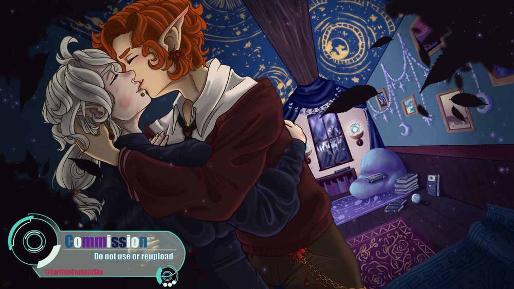 @mokicosplay.bsky.social really is my art patron, he manages to make me love each one I do! There really is nothing like being commissioned to draw gay cowboys kissing, I’m living the dream here!