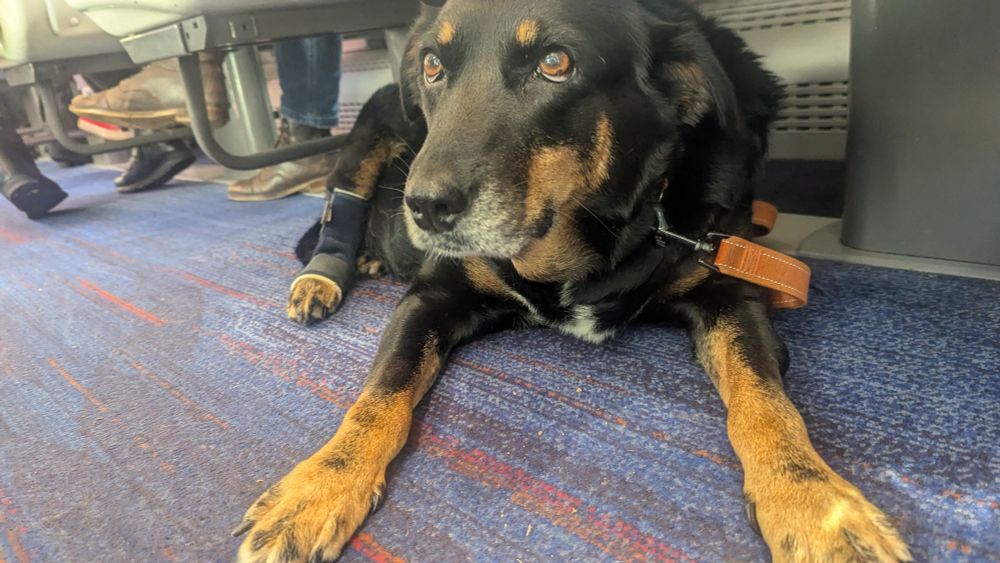 Still hasn't stopped woofing though, although limited to short walks with a brace on.