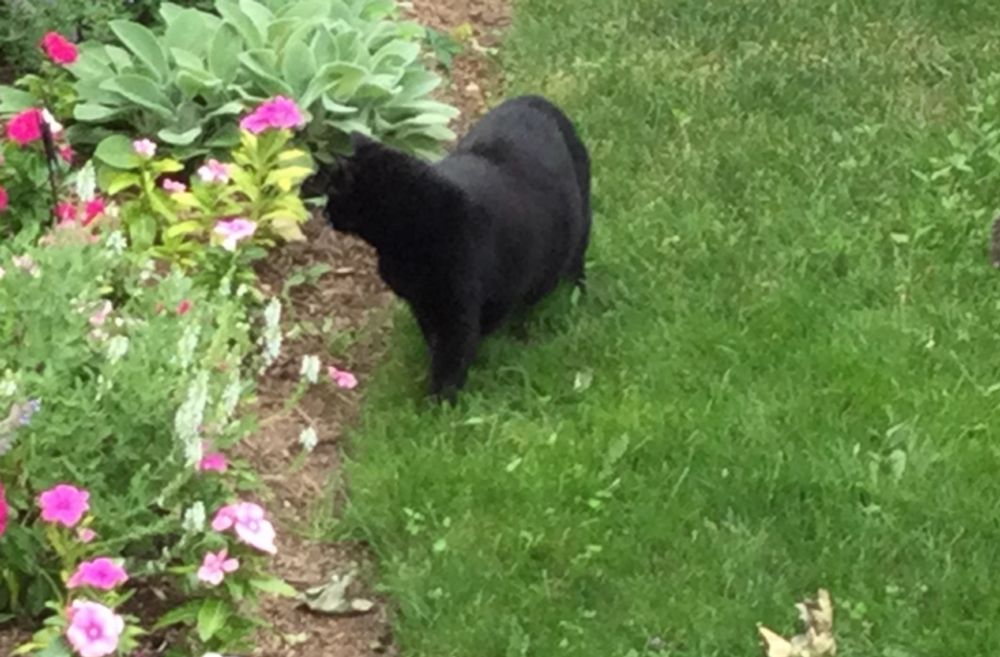 i have trouble getting Graeme in too. He wants to stay out all night too on a pillow or railing.