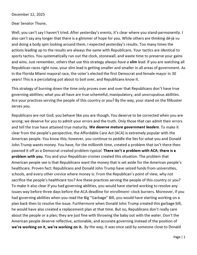 Please pass this along to the unreachable SenatorThune.