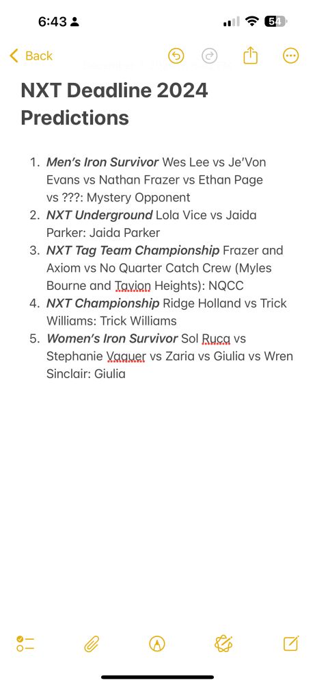 #NXTDeadline Predictions
