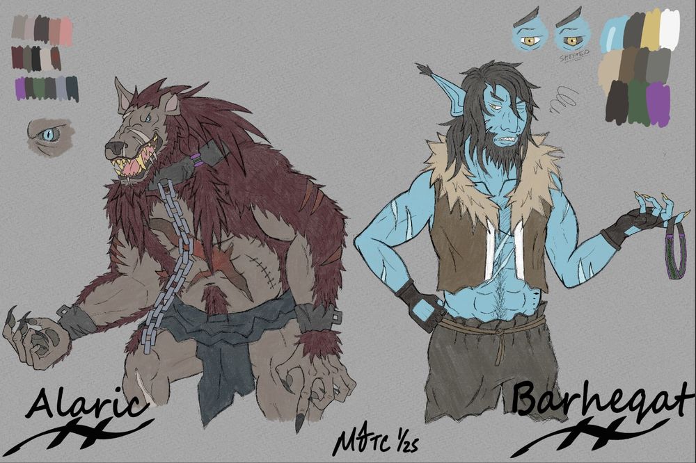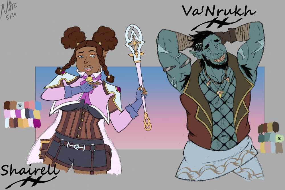 meet Shairell (half-elf) and Va'Nrukh (half-orc), lifelong friends to Ophelia and Yves!