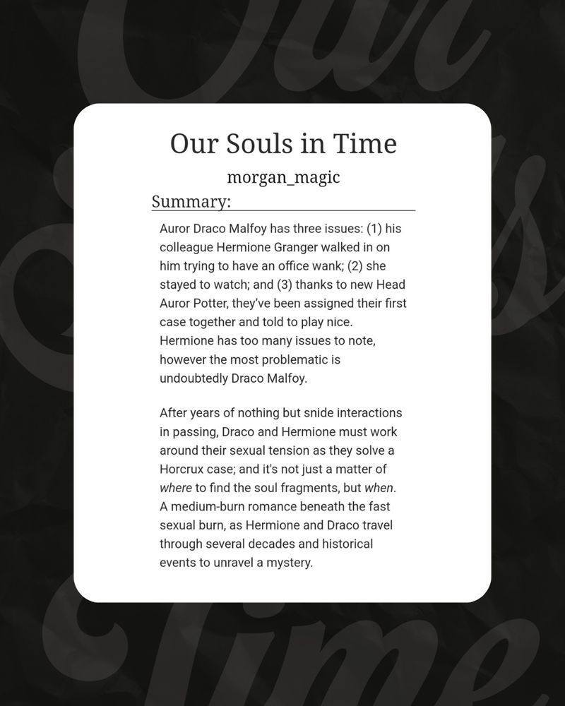 Reluctant Auror partners (to pining idiots to lovers) Draco and Hermione travel back in time to find and destroy new horcruxes.