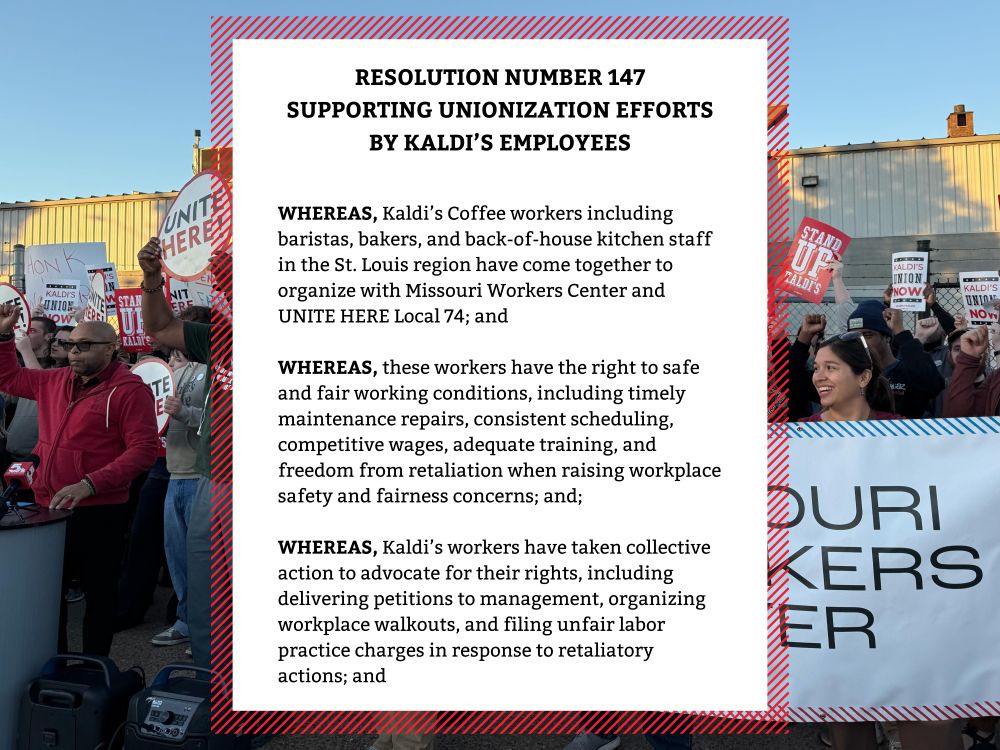 “I am proud to support Kaldi's Coffee workers as they join with Missouri Workers Center and UNITE HERE Local 74 to advance these core values."