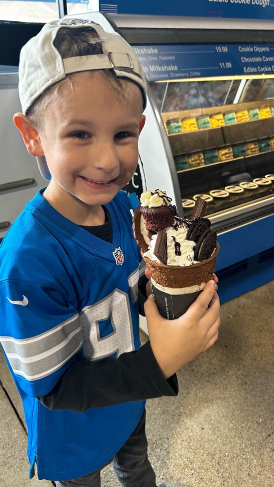This big guy is headed to Ford Field to see his FIRST @detroitlions.bsky.social game ever tomorrow. I am so excited to bring him for the first time I know he is going to have a BLAST!! #OnePride
