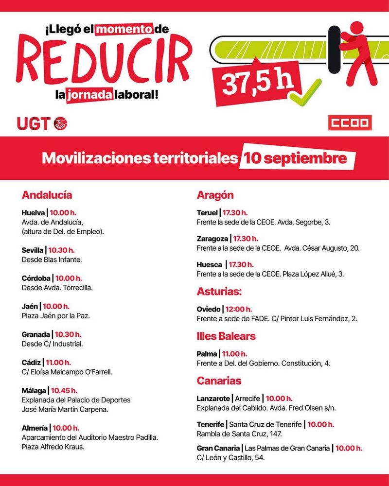 ⚡️Mañana vamos a gritar alto y claro que queremos tener más tiempo para tener más vida. Ya toca reducir la jornada a 37,5 horas, ¡es el momento!