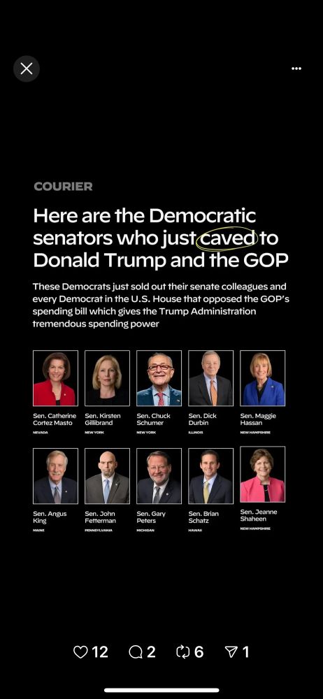 With everything else that is wrong with America, Chuck Schumer voted No to shut down the country and allowed Trump/Musk free rein. He must step down. I would also like his cohorts/traitors to resign immediately. Here they are! Just look below.