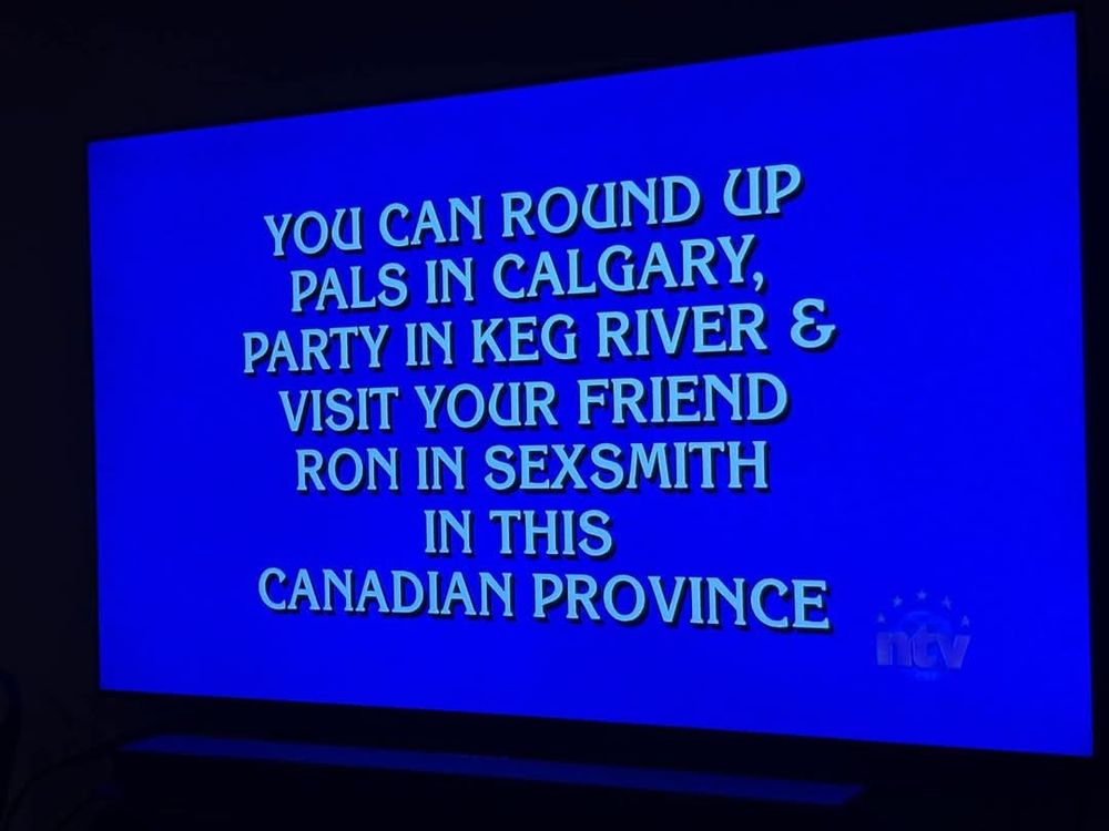 Represented in Jeopardy tonight #stillpartofCanada