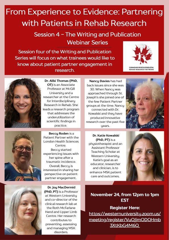 Featuring insights from researchers and patient partners on meaningful engagement in MSK rehab research.