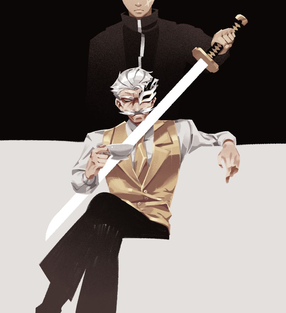 WIP this has been a bit more experimental and I've been giggling the entire time because it's just "I like to draw with pencil crayons and play with toy trucks". Also trying not to make it look like the "laugh and you go to hell" pic (also from Kagurabachi)