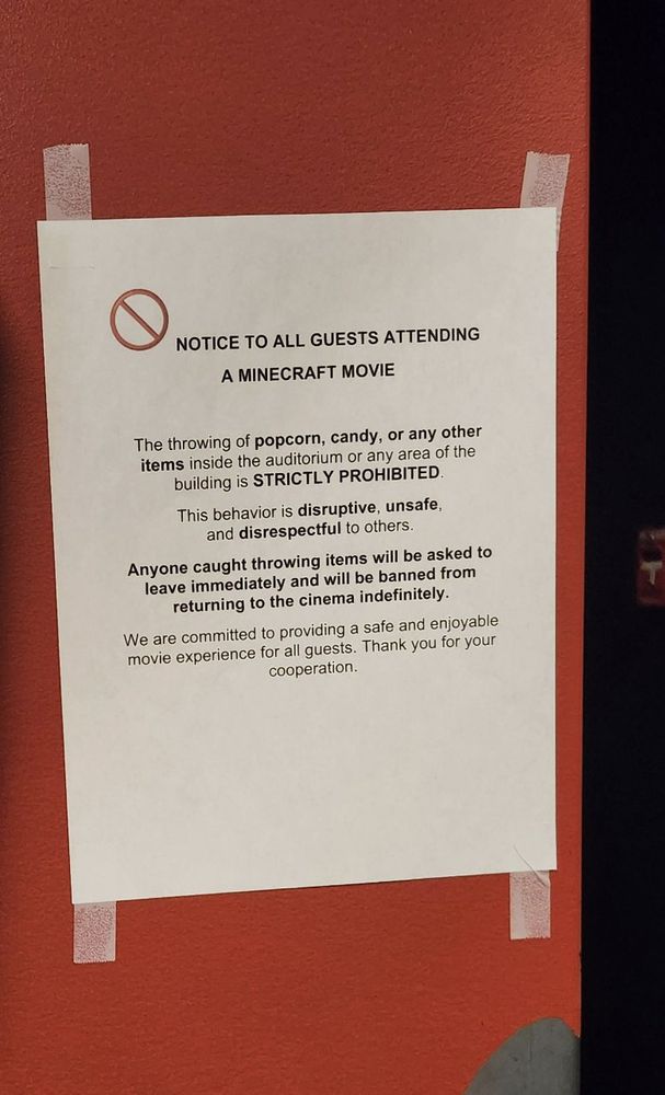 Movie theaters are now banning people who throw popcorn and other items during the Chicken Jockey scene in #Minecraft