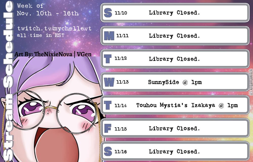 Here is next week's Stream Schedule (Nov. 10 - 16)!!!