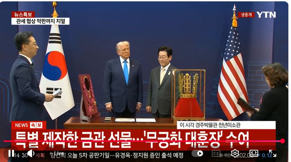 Trump has landed in South Korea. He will speak at the APEC conference, and then meet with South Korean President Lee Jae Myung. Lee will present Trump with the "Grand Order of Mugunghwa," the highest decoration of the South Korean government, and gift Trump a replica of a Silla dynasty gold crown.