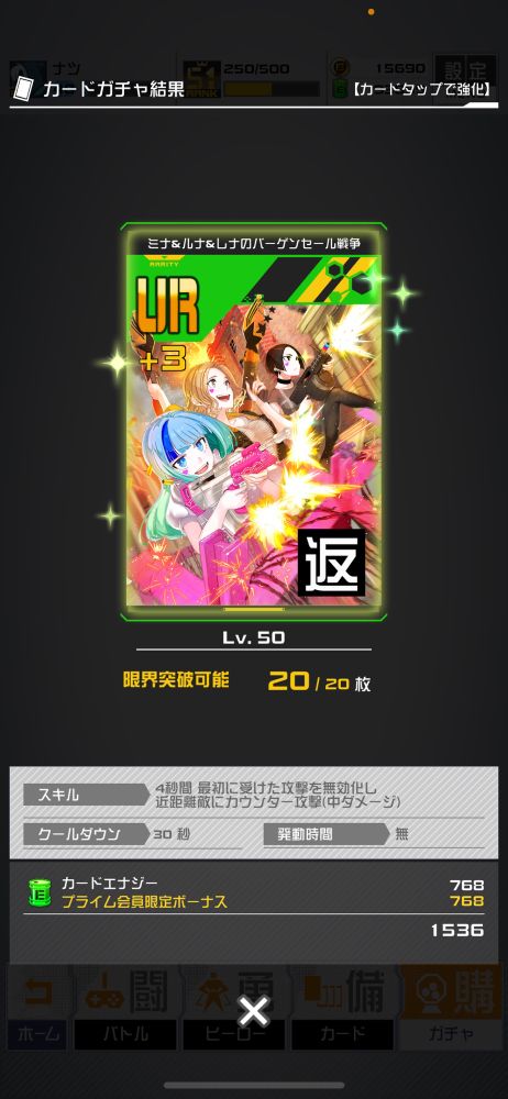BM貯まったから追加ガチャした。URカードは出なかったけど別コスのポプ子とピピ美来てくれたから結果オーライ