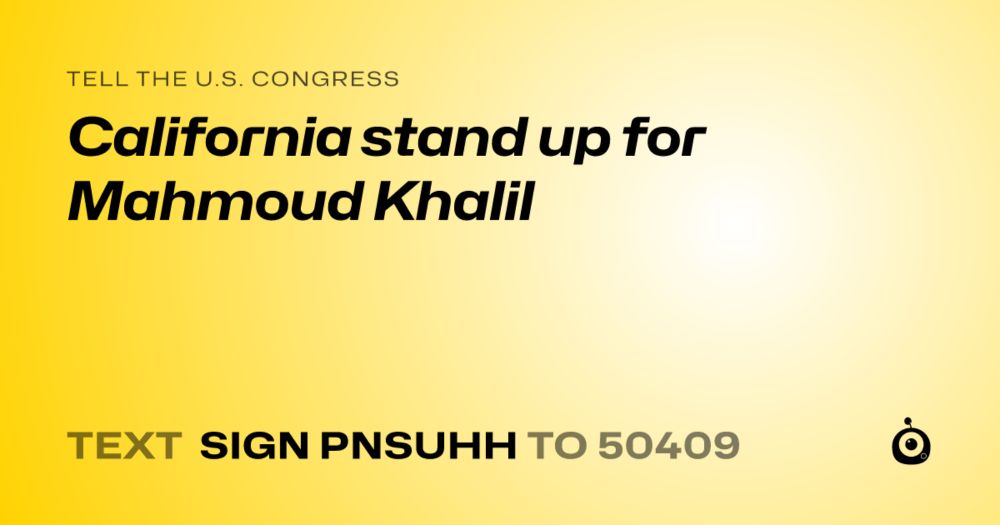 I’m asking you to speak out for and fight for the release of Mahmoud Khalil, a permanent resident who was abducted from his Columbia dorm room over the weekend in what looks like a violation of his First Amendment and due process rights.
