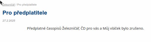 jsem spokojená předplatitelka, ale při pokusu o předplacení na další rok jsem v odměnách za ČD body nenašla nic a na webu visí toto, jde o něco dočasnýho, nebo předplatné už nebude? :(
