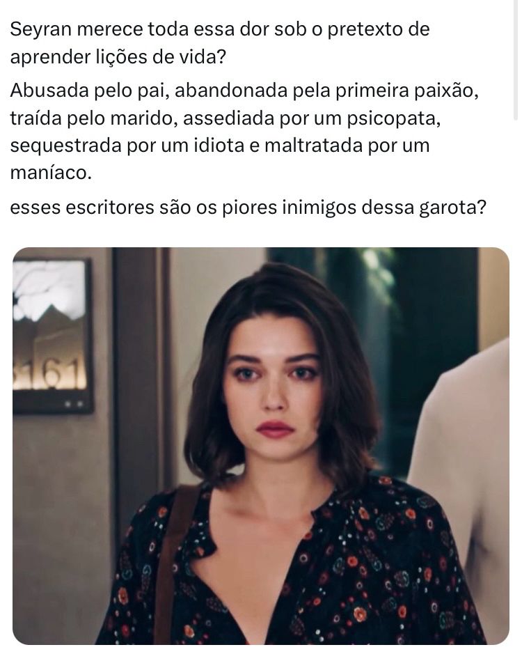 A única pessoa que eu tenho dó é da seyran que só teve gente bosta na vida. Nasceu em uma família violenta, yusuf, ferit, Tarik, akim e Sinan. Não bastou tudo que ela já passou