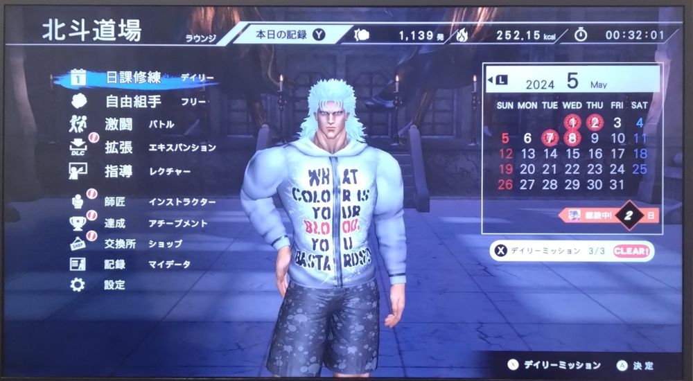 怪我をしたので筋トレとストレッチを中心にした(反映されないけど北斗は「しっかりストレッチ」をやってる)