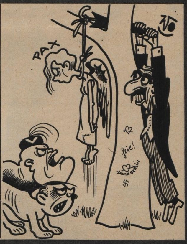 Pour la commémoration du 87e anniversaire des pogromes du 9-10 novembre 1938, deux dessins de Wo, publiés à Paris, en 1938. Il voyait clair, malheureusement trop clair.