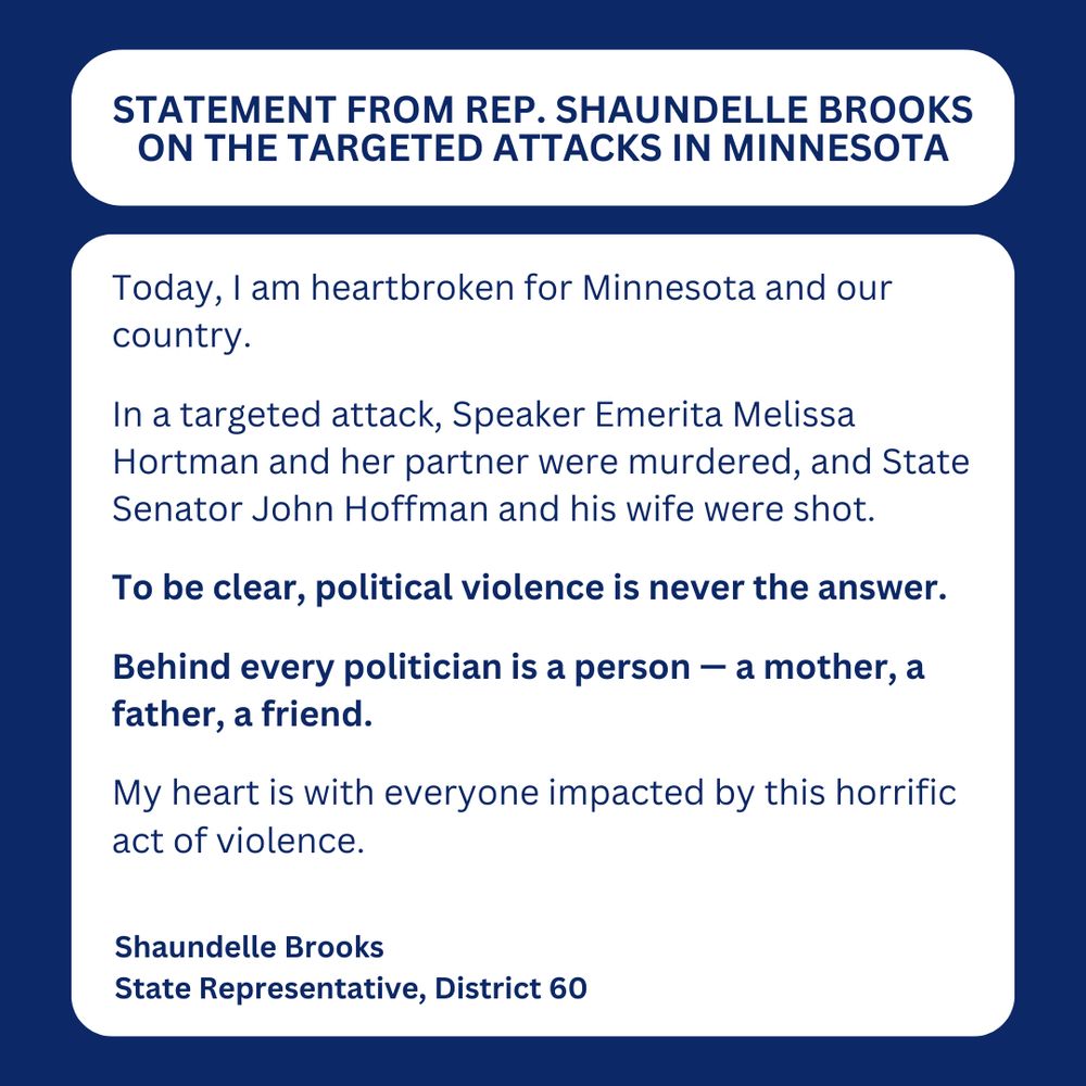 My heart breaks for Speaker Emerita Melissa Hortman and State Senator John Hoffman's families!!