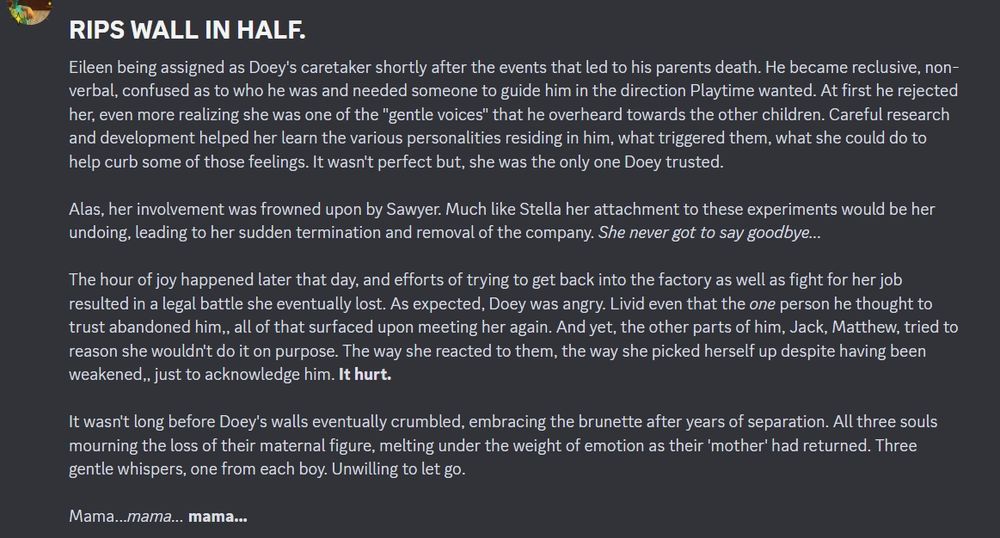 I'm here with a slightly heavier fixation thanks to Poppy Playtime. Doey's my son. Here's some platonic yume slop for you guys.