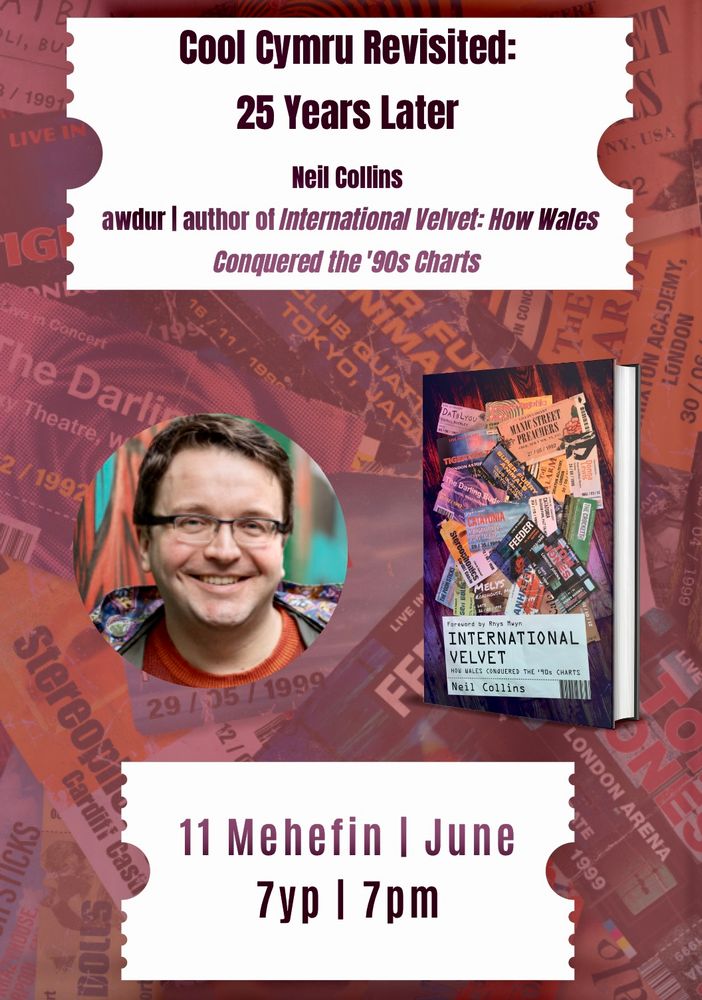 Author @neilcollins1986.bsky.social joins us on 17th July to discuss International Velvet: How Wales Conquered the '90s Charts, alongside special guest, music writer Bill Cummings.