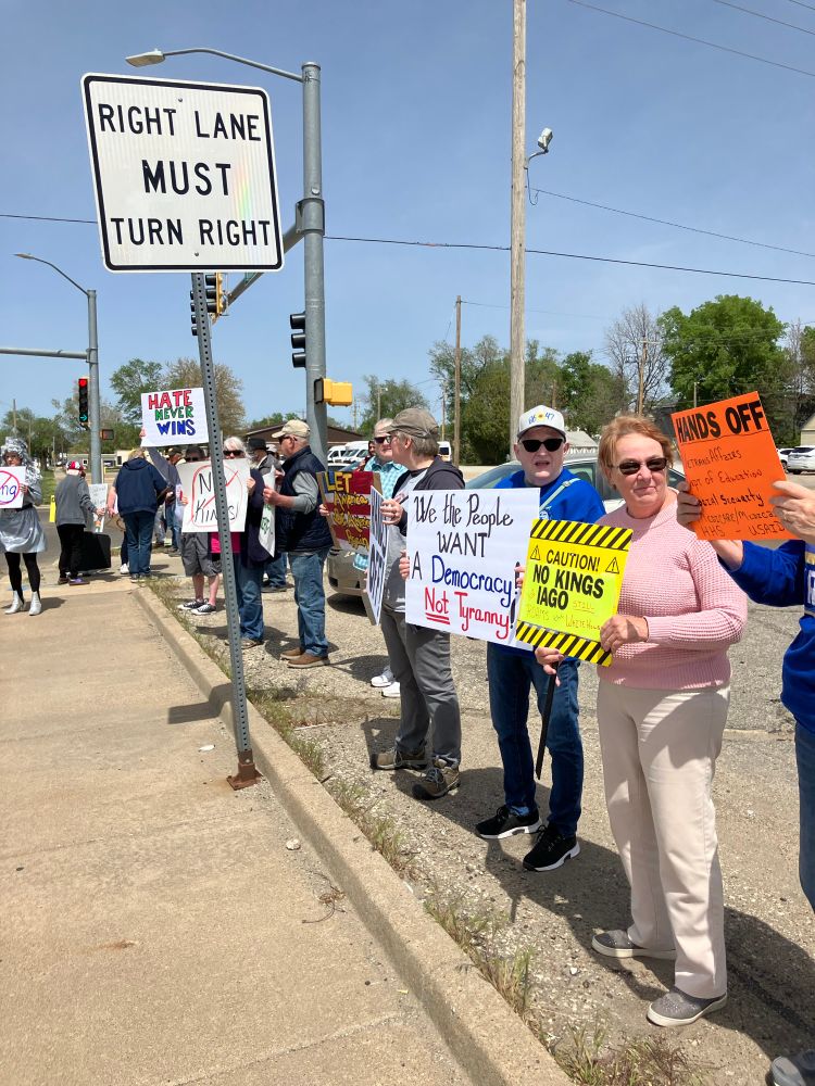 Salin,Kansas HandsOff was warm, welcoming and well attended. Thanks to the protesters, the sign-lenders, the drive-by honkers & wavers.