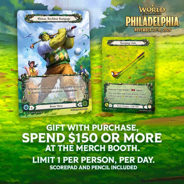 Spend $150 or more on this sweet Philly-exclusive merchandise, and you'll even swing an alt-art Rhinar promo! 🏌️