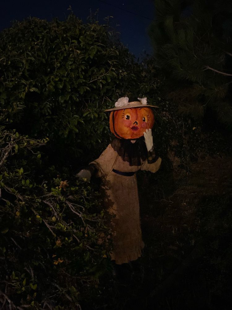 I was a Pottsfield pumpkin lady this Halloween 🎃 Made the pumpkin head out of paper mache & paper mache clay. Accidentally carved her eyes lopsided but it adds a cute and creepy charm #otgw #overthegardenwall #halloween