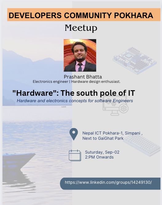 This time we have an Electronic Engineer Prashant Bhatta who will speak about integrating software into Electronic devices.