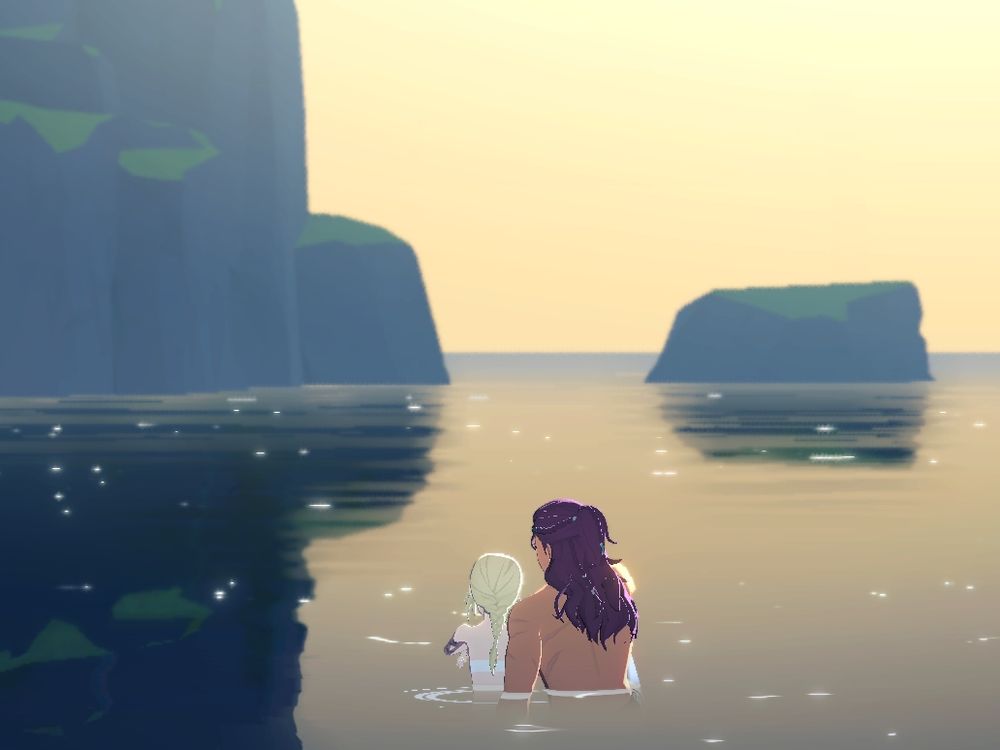 해가 지기를 기다리며 몸 담갔음