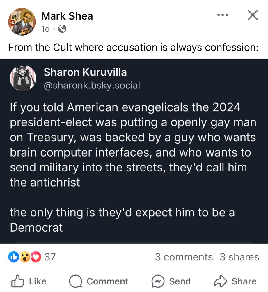 @sharonk.bsky.social congrats you made it to Mark Shea Facebook.