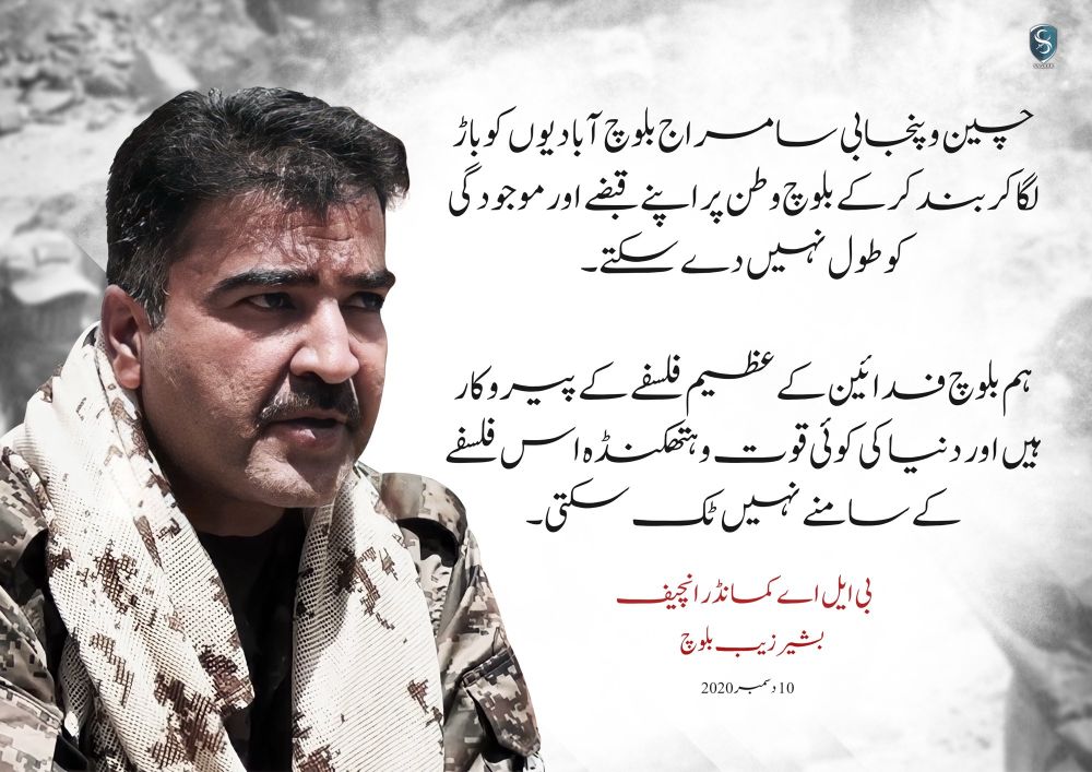 ‏ہم بلوچ فدائین کے عظیم فلسفے کے پیروکار ہیں اور دنیا کی کوئی قوت و ہتھکنڈہ اس فلسفے کے سامنے نہیں ٹک سکتی۔