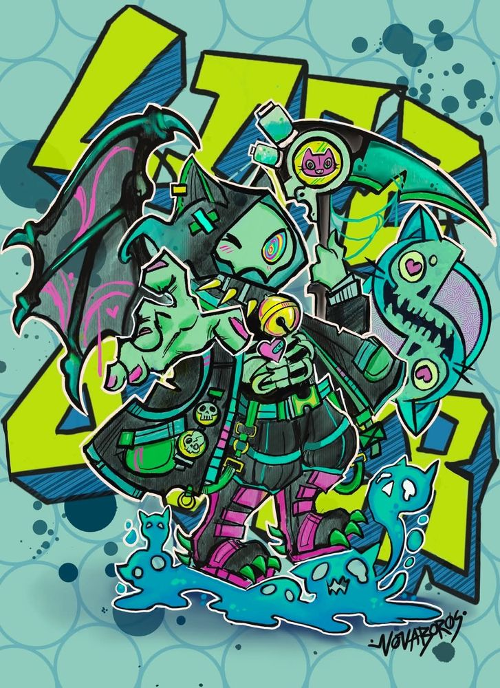 #bombrudhcyberfunkvibes #grimreaper #neko #illustration #digitalart #meow #kawaii