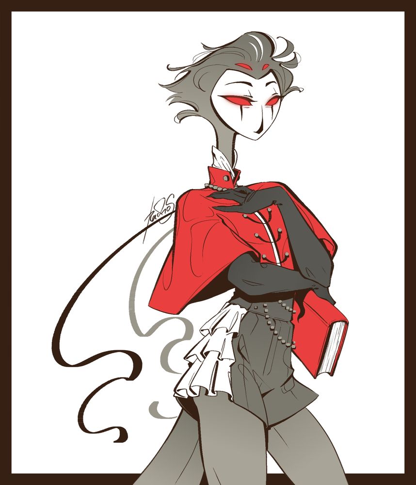 Doodles from 1nst4 ft transfem Al 🖤 (amazing idea from dear @debergerac.bsky.social 💕) #hazbinhotel #Alastor