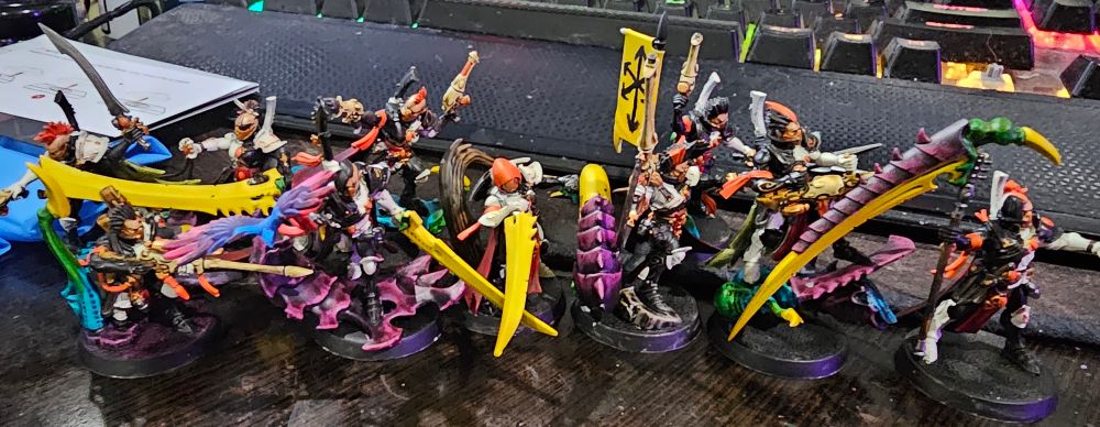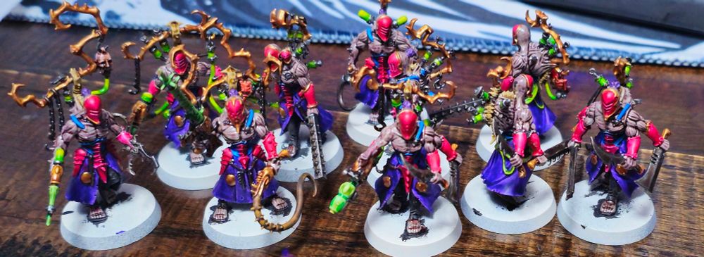 Loving variety painting. Still don't have enough for a necromunda gang but they're still super goofy and fun models to work with. Knights continue to be a lovely canvas and I had fun kotbashing some Malice-worshipping chaos elves