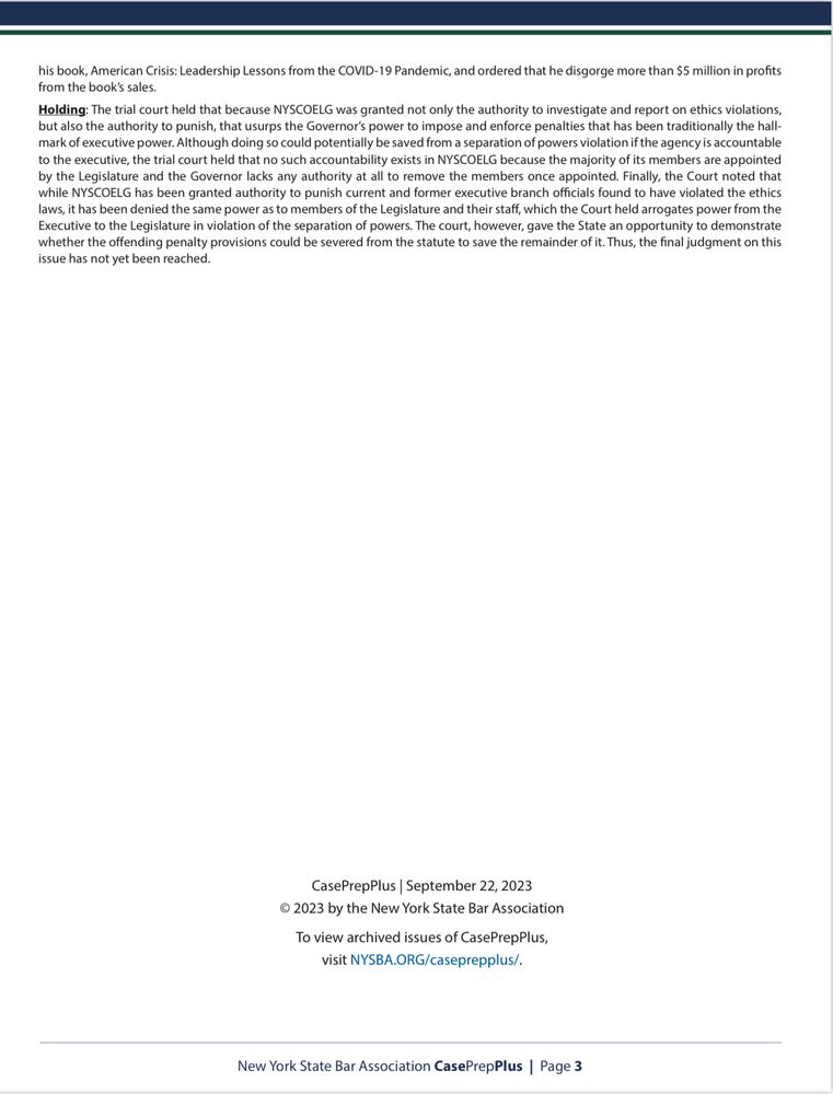 As my first post here, I’m honored to announce that I’ve been named the new editor of NYSBA’s CasePrepPlus newsletter, which summarizes New York’s most important appellate decisions every week. I’m very excited for the opportunity (which prompted a Judge to call and scare me on Friday afternoon)!