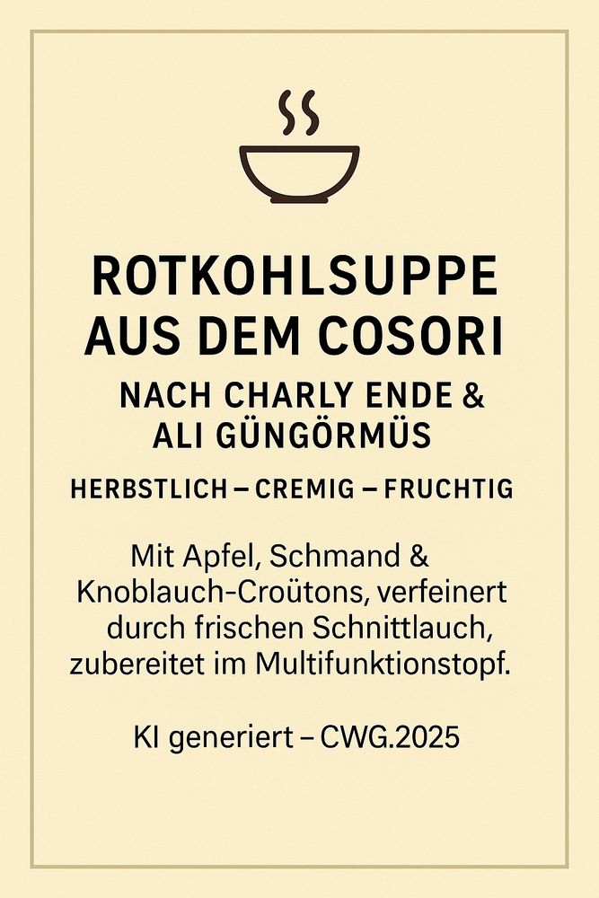 Cremig, fruchtig, perfekt für kalte Tage mit Schmand, Apfel & Knoblauch-Croûtons. Energiesparend im Cosori gekocht, inspiriert von Charly Ende & Ali Güngörmüş.