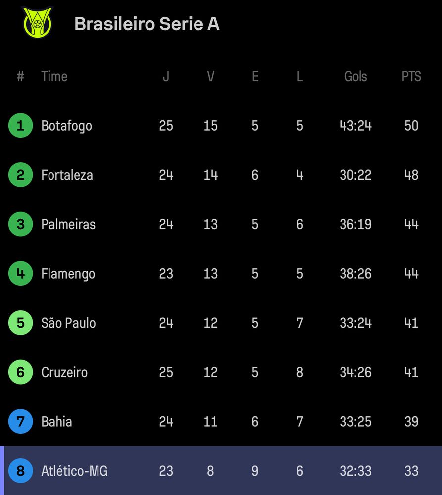 Estamos no G6, um ponto na frente do Cruzeiro. Próximo confronto é contra o Fortaleza, lá no Ceará. Sábado, dia 21/09.