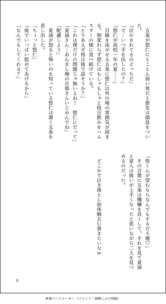 Xはおふくと他垢で五悠かいてます。他垢の小話もこちらにあげます。