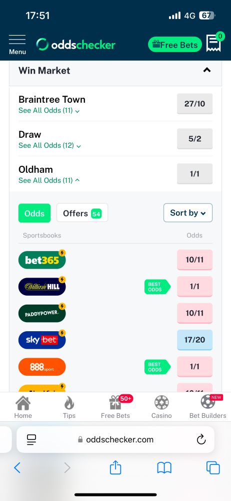 Top price on Oldham promotion now just 5/1 at Skybet